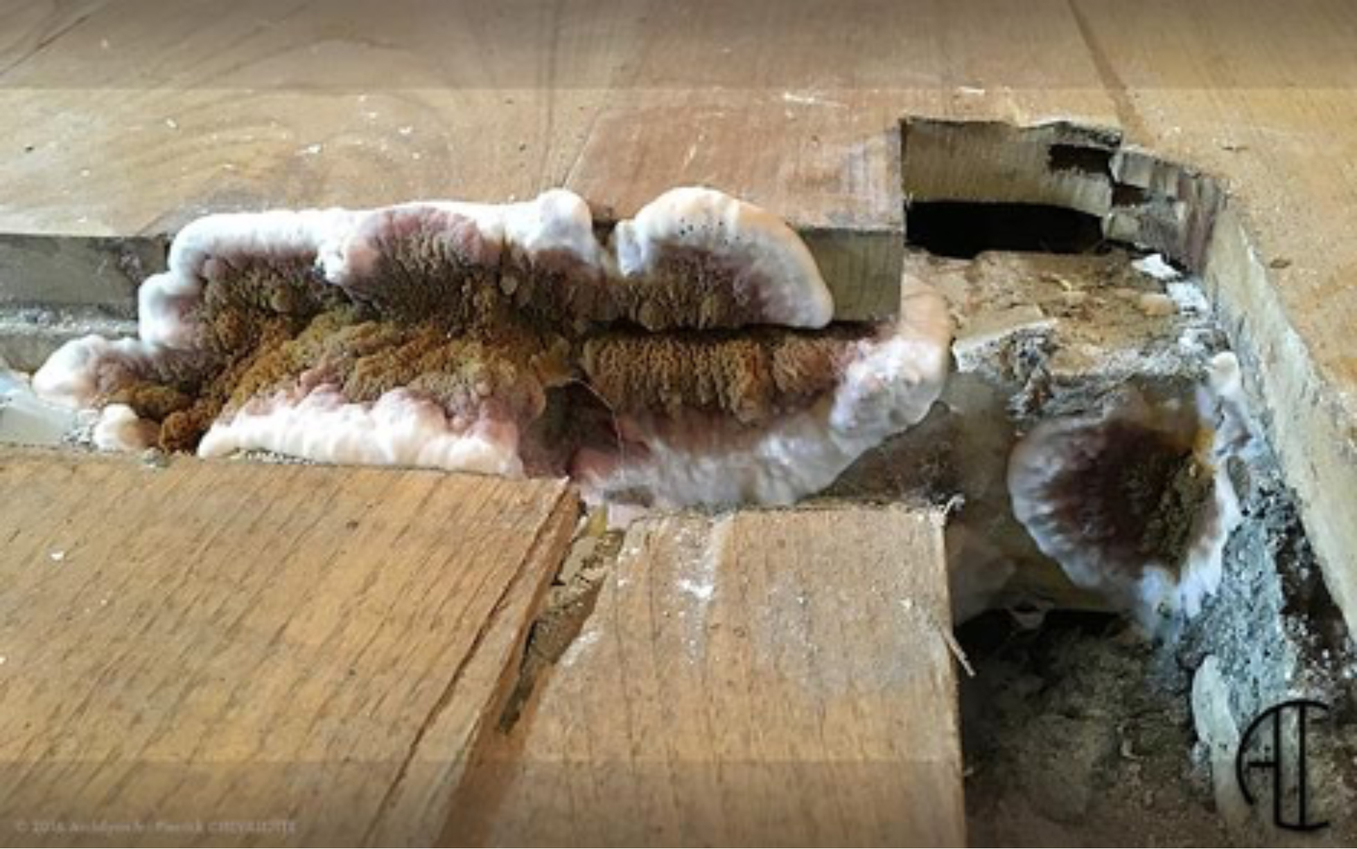 La mérule est un champignon qui apparait dans les zones du bâtiment restées trop longtemps dans l’humidité.